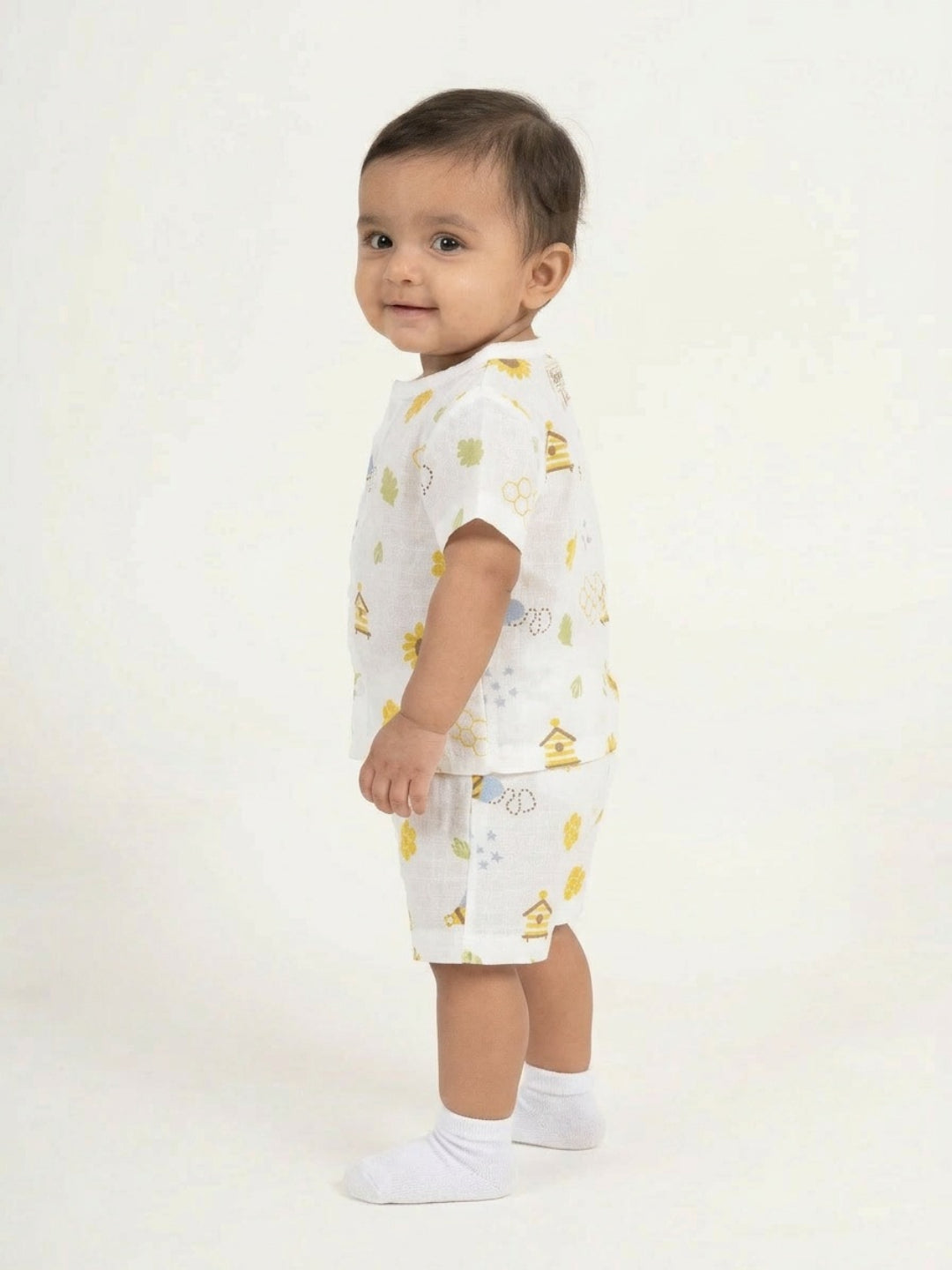 Biglilpeople Unisex Multicolor Floral & Honeybee Round Neck Short Sleeves Clothing Set