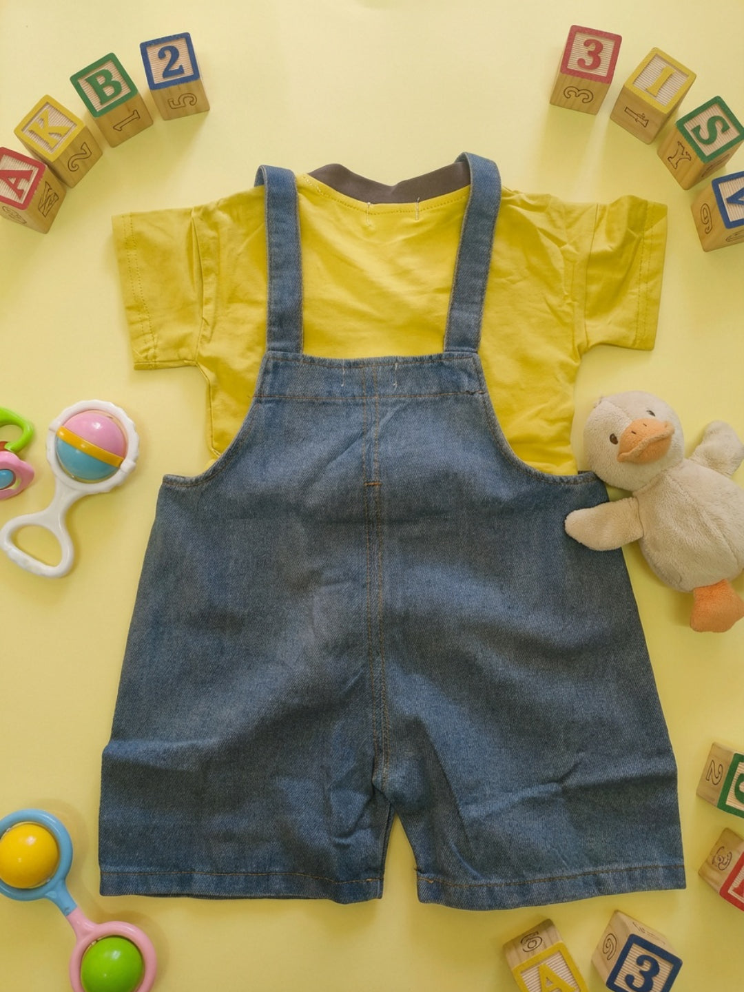 This dungaree set is designed for comfort and everyday style, making it a versatile addition to your little one's wardrobe. Featuring adjustable shoulder straps and a relaxed fit, it allows easy movement throughout the day. Perfect for casual outings, playtime, or layering over tees and shirts, this dungaree combines practicality with a classic, timeless look.