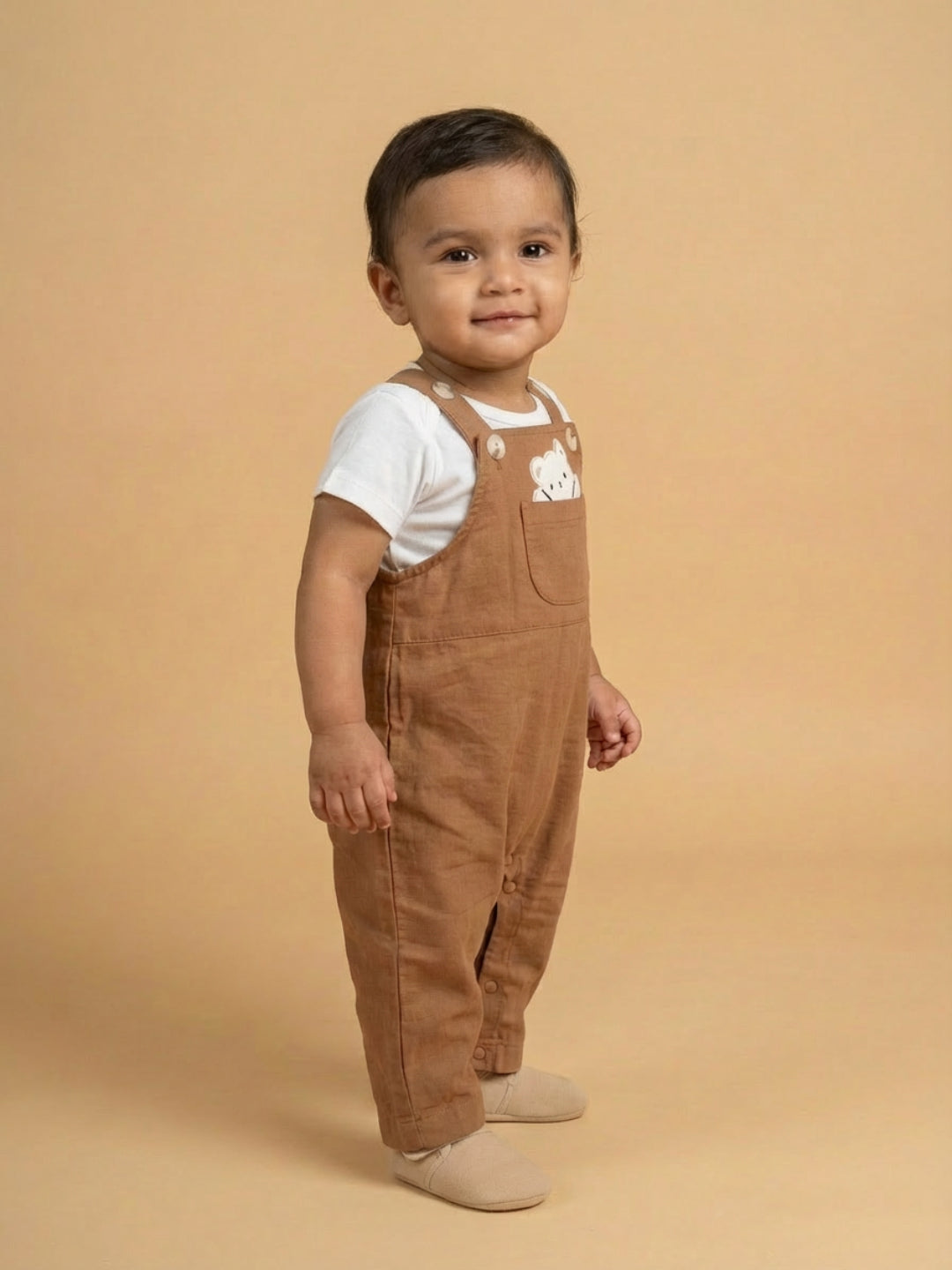 Biglilpeople Unisex Brown Square Neck Sleeveless Dungaree