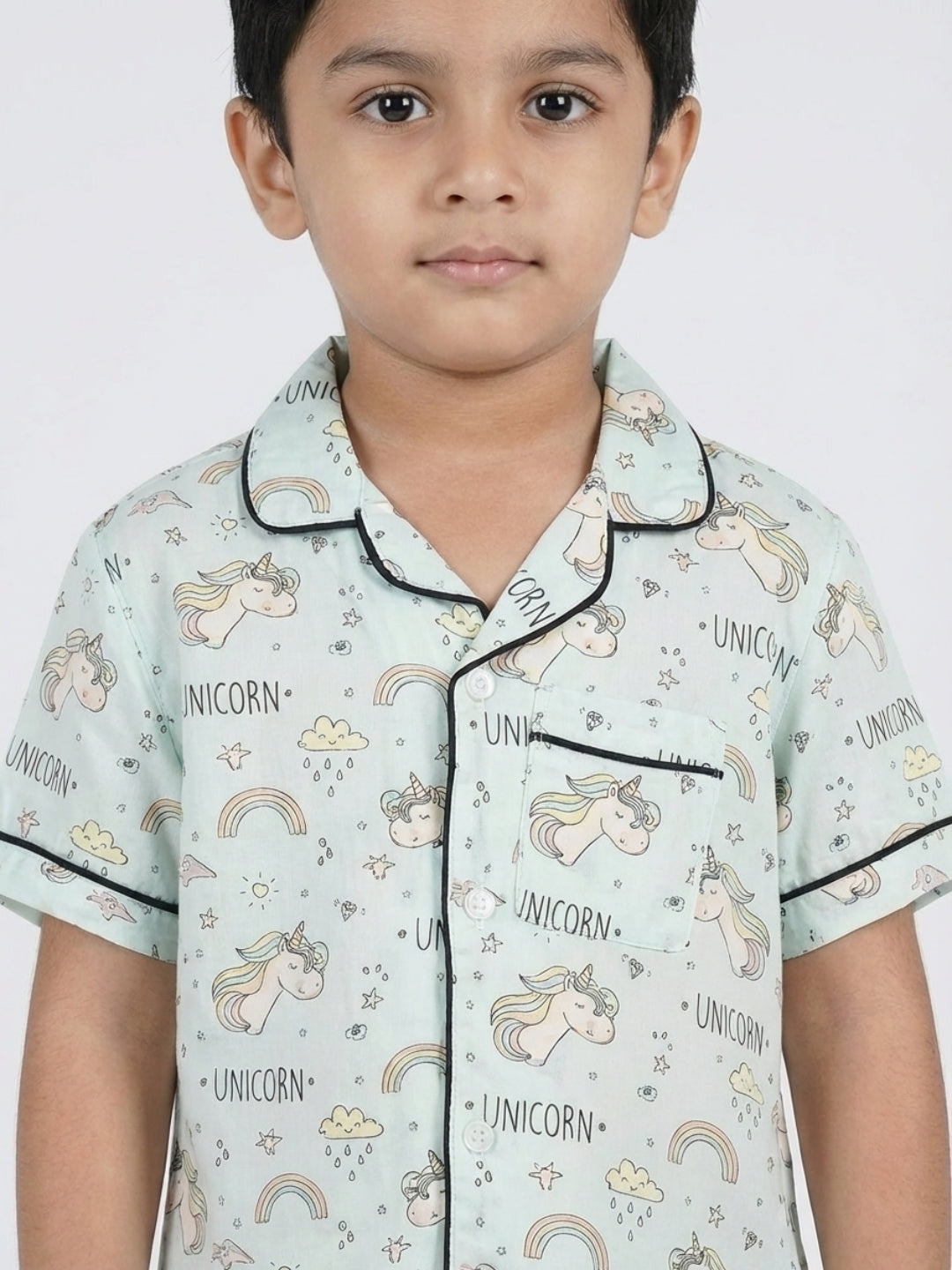 Biglilpeople Kids Unisex Unicorn Printed Pastel Blue Color Rayon Short Sleeves Shirt & Shorts Nightsuit