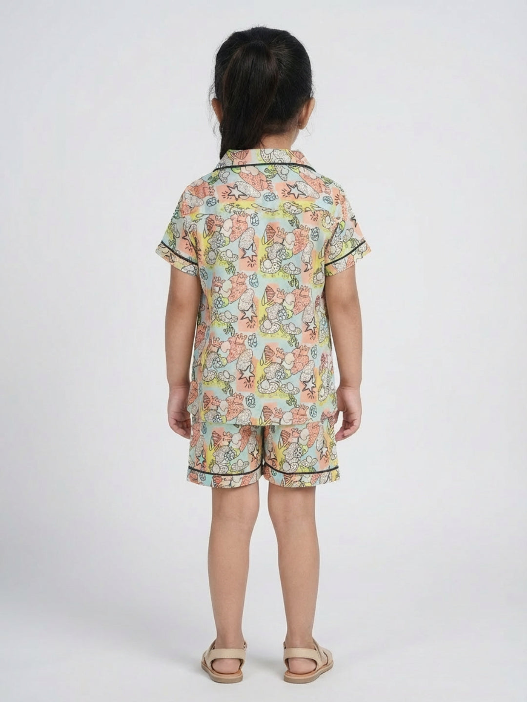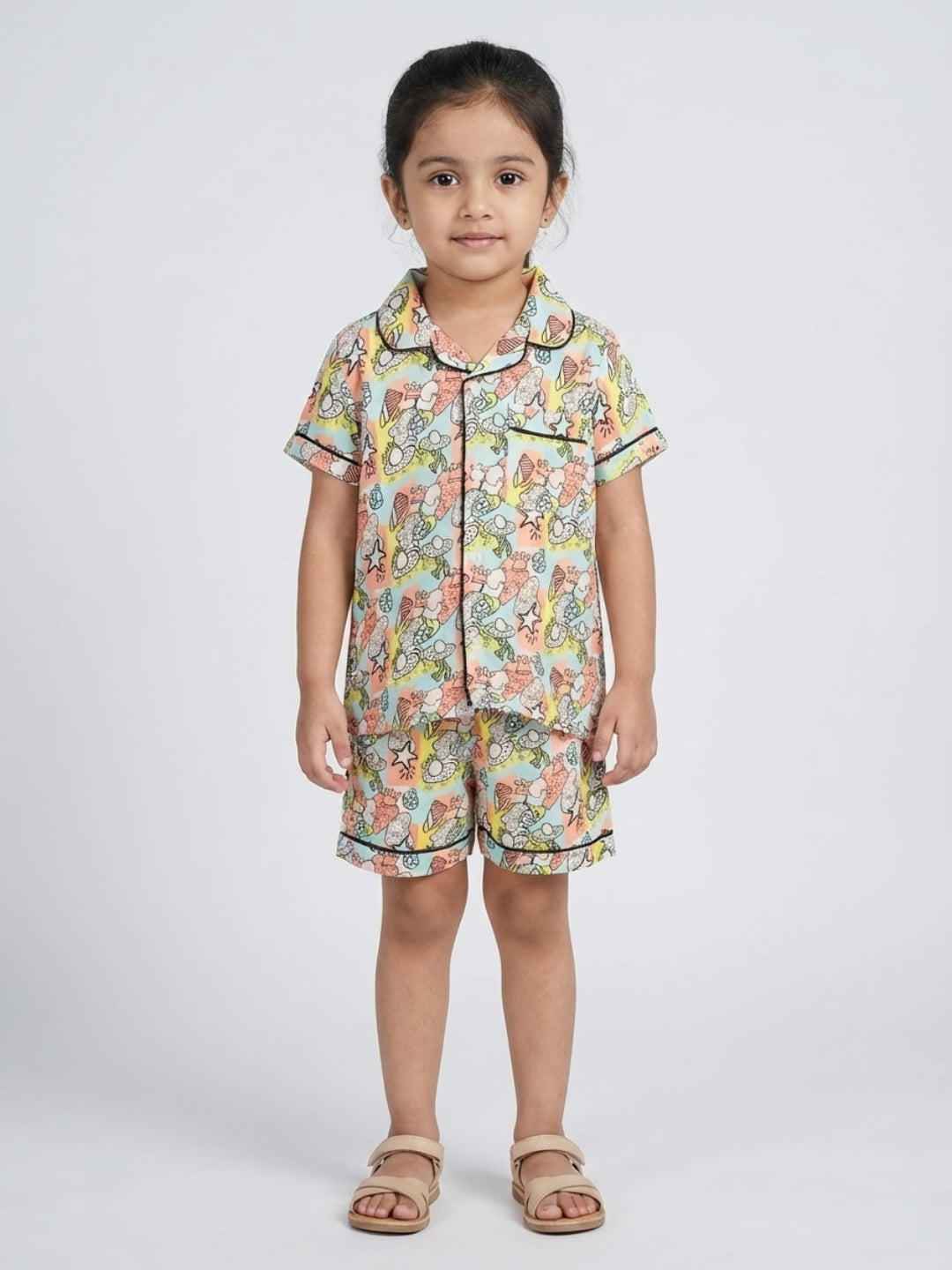 Make bedtime comfortable and fun with the Biglilpeople Kids Short Sleeve Shirt & Shorts Nightsuit. Designed for everyday sleep and lounging, this kids nightwear set features a stylish shirt paired with matching shorts for a relaxed and breathable fit. The easy-to-wear short sleeve design keeps kids comfortable through warm nights while allowing free movement during sleep and playtime at home. Available in a variety of playful prints and classic patterns, this nightsuit is perfect for kids who love comfort with style. The soft feel and well-finished seams ensure all-night ease, while the elasticated shorts waistband provides a secure yet gentle fit. Ideal for daily nightwear, sleepovers, vacations, or gifting, this kids nightsuit combines practicality, comfort, and adorable design in one must-have sleepwear set.
