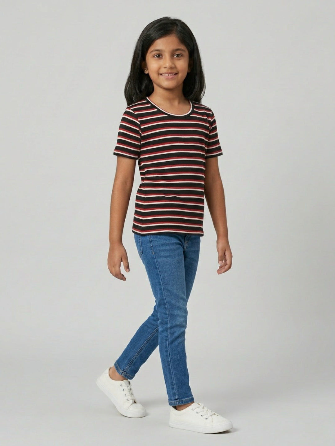 This stylish girls T-shirt is designed to offer comfort and everyday style. Made from soft and breathable fabric, it feels gentle on the skin and provides all-day comfort. The versatile design makes it suitable for casual outings, playtime, or daily wear. Easy to pair with jeans, shorts, skirts, or leggings, this wardrobe essential adds a trendy and comfortable touch while allowing ease of movement.