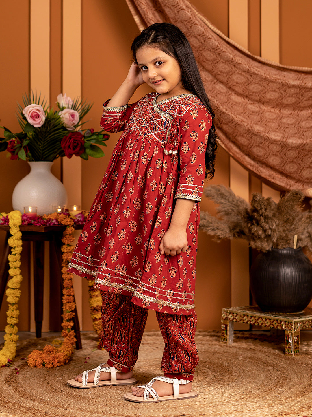 Salwar suit Set in Ajrakh Print - Red