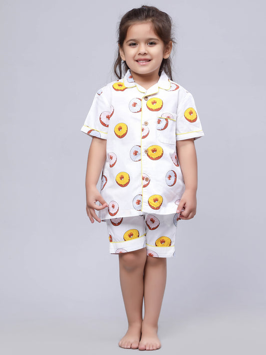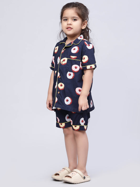 Notched Unisex Nightuit in Fun Donut Print- Navy