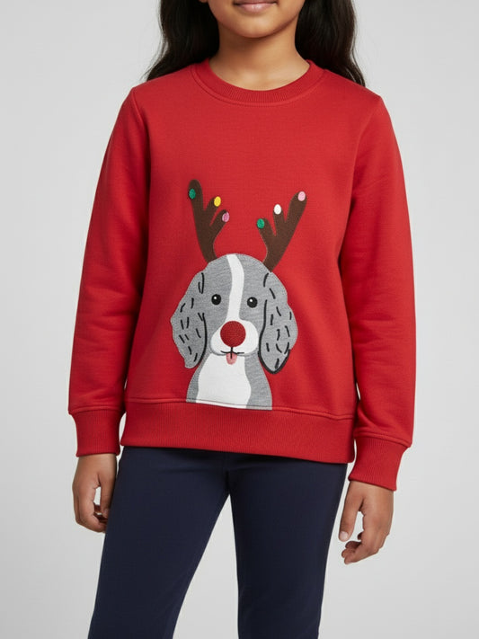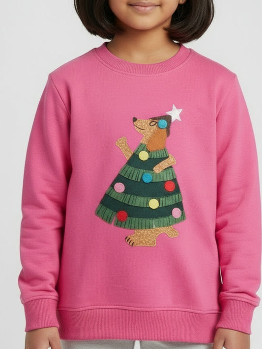 Girls Pink Christmas Tree Bear Winter Festive Sweatshirt